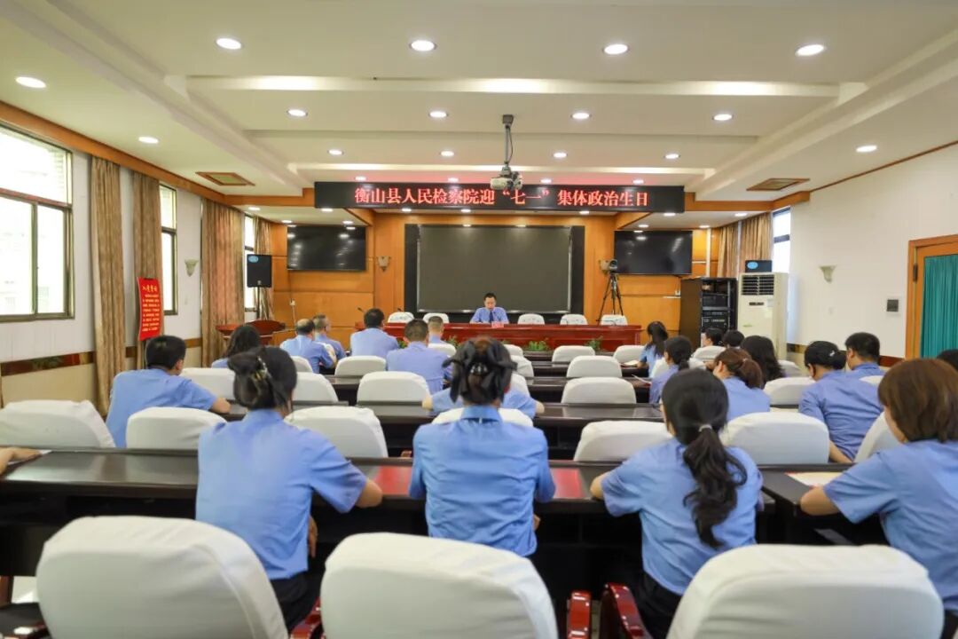 为进一步增强党员荣誉感、责任感和使命感,提升党组织凝聚力、战斗力,奋力推动检察工作再上新台阶,在中国共产党成立103周年之际,7月1日上午,衡山县人民检察院机关党支部举行“重温入党誓词 共过政治生日”活动。衡山县党组书记、检察长伍多益出席活动并讲话,党组成员、政治部主任朱江涛主持活动,该院全体党员参加活动。